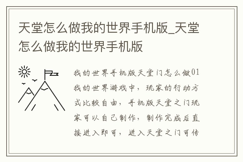 天堂怎么做我的世界手機版_天堂怎么做我的世界手機版
