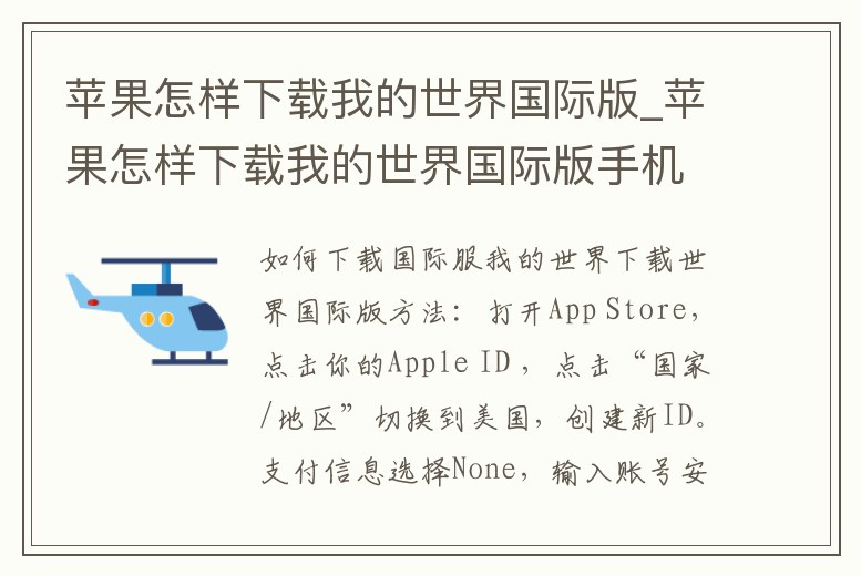 下載世界國際版方法:打開App Store,點擊你的Apple ID ,點擊“國家/地區”切換到美國,創建新ID。支付信息選擇None,輸入賬號安全信息,購買Itunes Gift Code 充值到賬戶,進行購買國際版Minecraft。