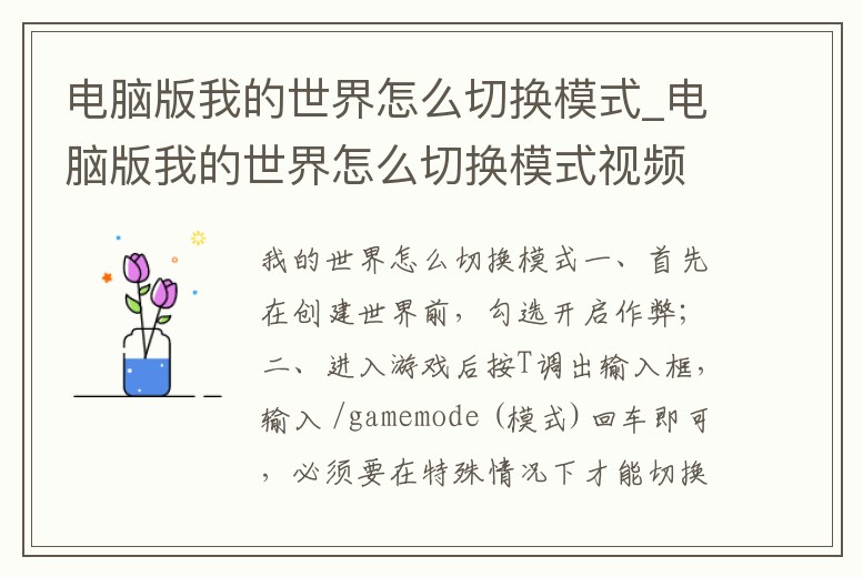 電腦版我的世界怎么切換模式_電腦版我的世界怎么切換模式視頻