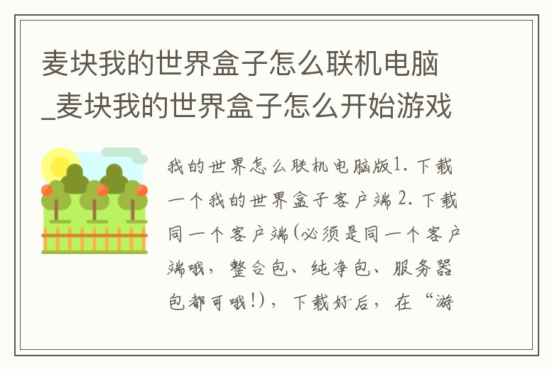 - 麥塊我的世界盒子怎么聯機電腦_麥塊我的世界盒子怎么開始游戲