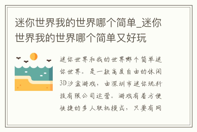 迷你世界我的世界哪個簡單_迷你世界我的世界哪個簡單又好玩