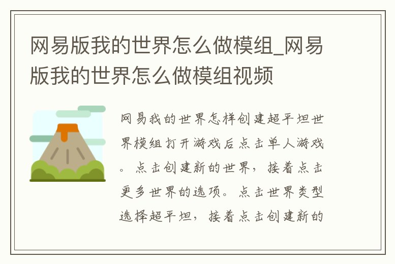 - 網易版我的世界怎么做模組_網易版我的世界怎么做模組視頻