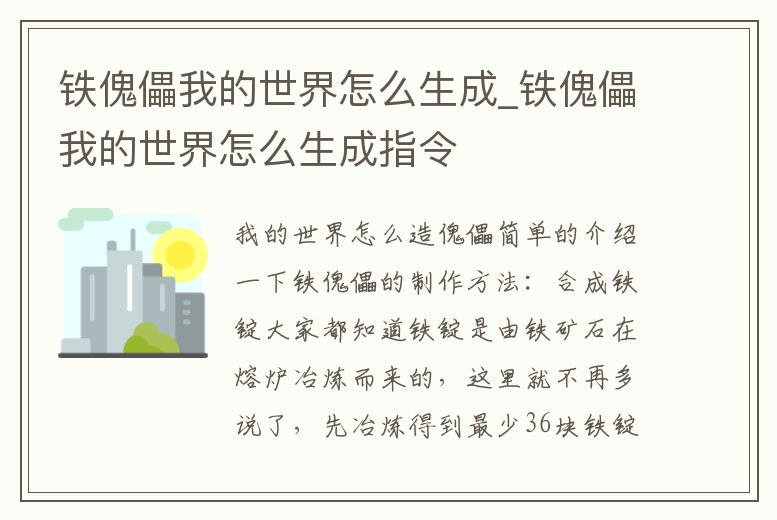 鐵傀儡我的世界怎么生成_鐵傀儡我的世界怎么生成指令