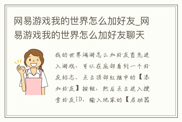網易游戲我的世界怎么加好友_網易游戲我的世界怎么加好友聊天