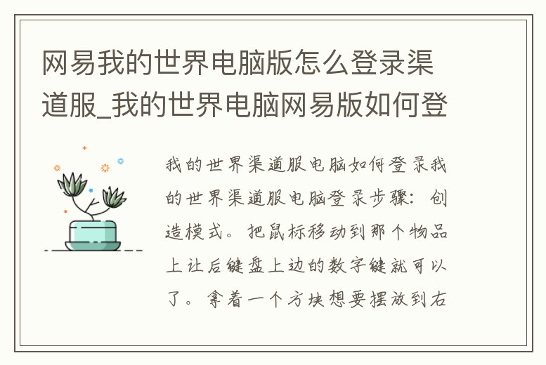- 網易我的世界電腦版怎么登錄渠道服_我的世界電腦網易版如何登錄