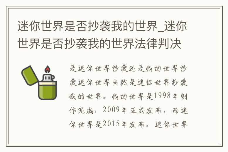 迷你世界是否抄襲我的世界_迷你世界是否抄襲我的世界法律判決書