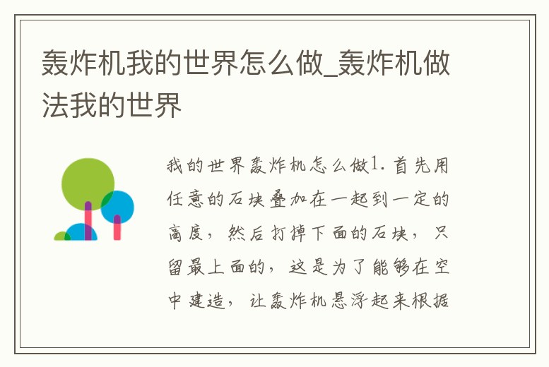 轟炸機我的世界怎么做_轟炸機做法我的世界