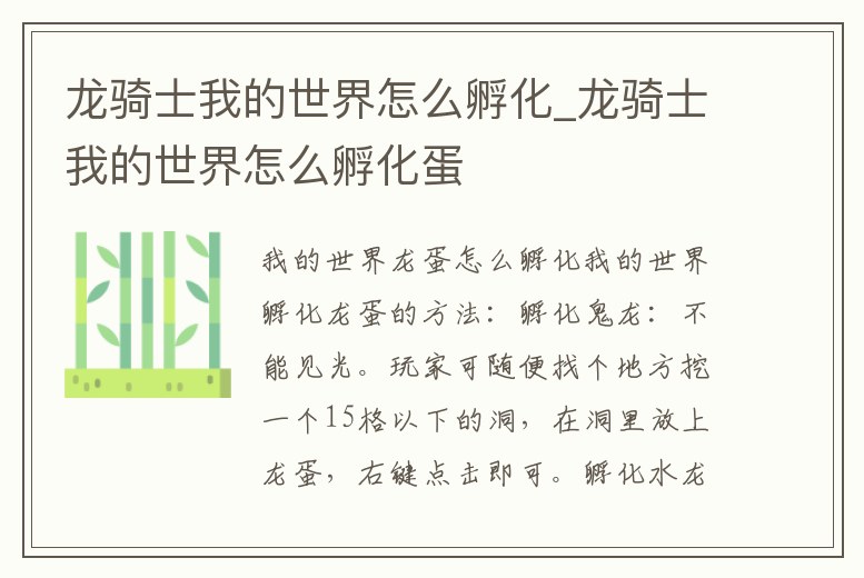 龍騎士我的世界怎么孵化_龍騎士我的世界怎么孵化蛋