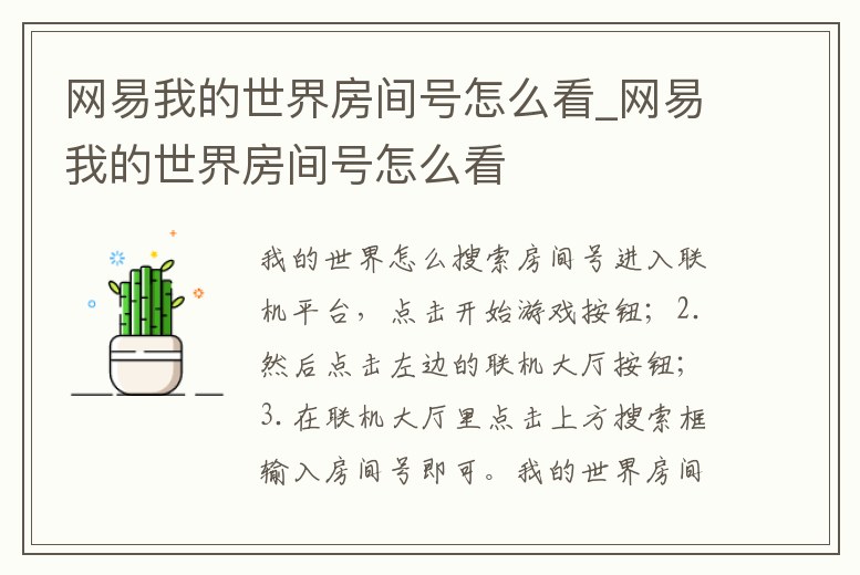 網易我的世界房間號怎么看_網易我的世界房間號怎么看