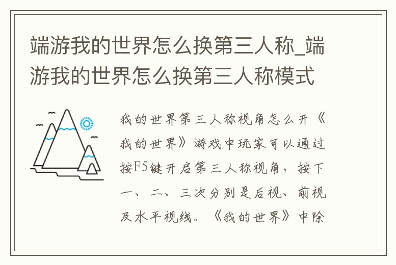 端游我的世界怎么換第三人稱_端游我的世界怎么換第三人稱模式