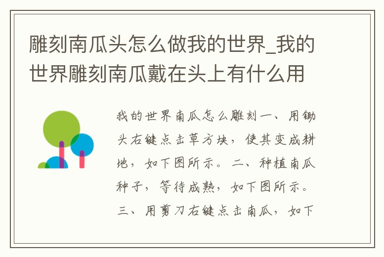 雕刻南瓜頭怎么做我的世界_我的世界雕刻南瓜戴在頭上有什么用