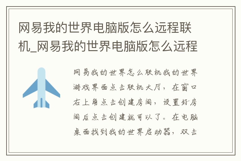網(wǎng)易我的世界電腦版怎么遠程聯(lián)機_網(wǎng)易我的世界電腦版怎么遠程聯(lián)機