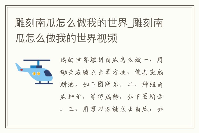 雕刻南瓜怎么做我的世界_雕刻南瓜怎么做我的世界視頻
