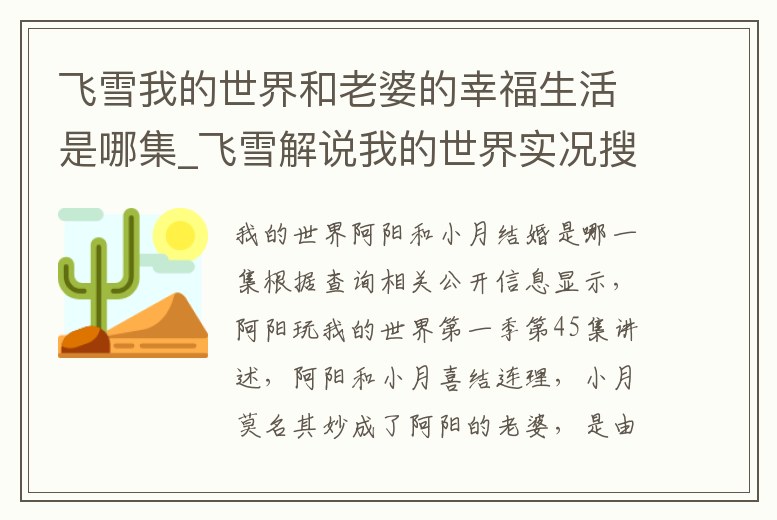 - 飛雪我的世界和老婆的幸福生活是哪集_飛雪解說我的世界實(shí)況搜狐