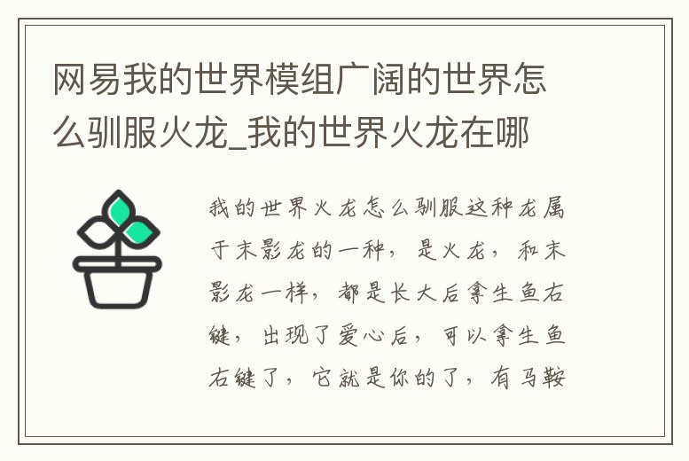 - 網(wǎng)易我的世界模組廣闊的世界怎么馴服火龍_我的世界火龍在哪