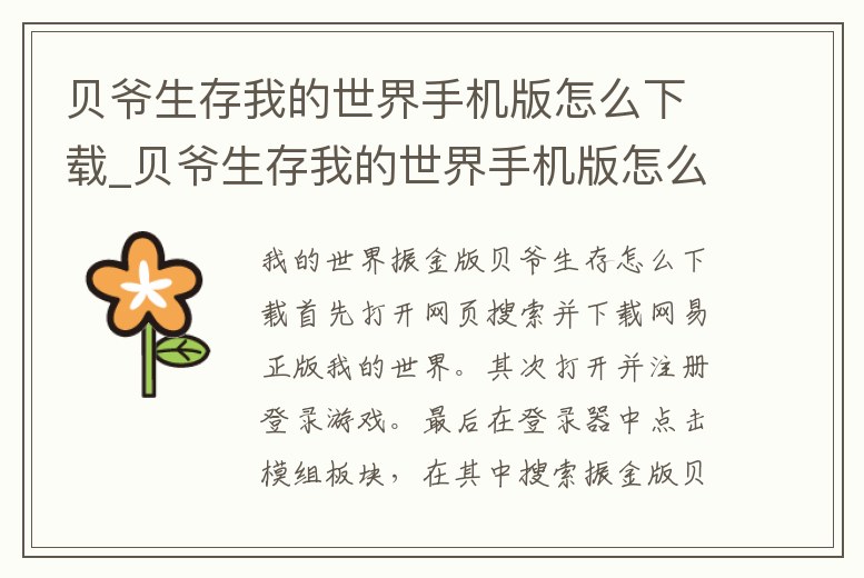 貝爺生存我的世界手機版怎么下載_貝爺生存我的世界手機版怎么下載模組