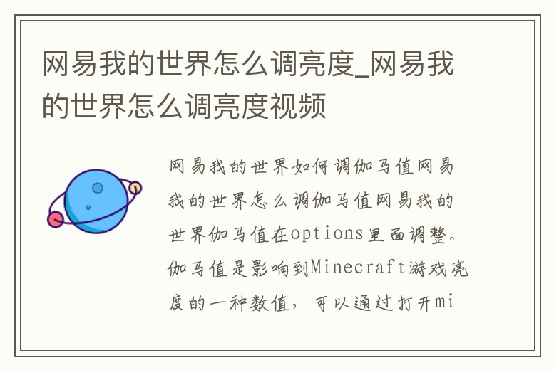 - 網易我的世界怎么調亮度_網易我的世界怎么調亮度視頻