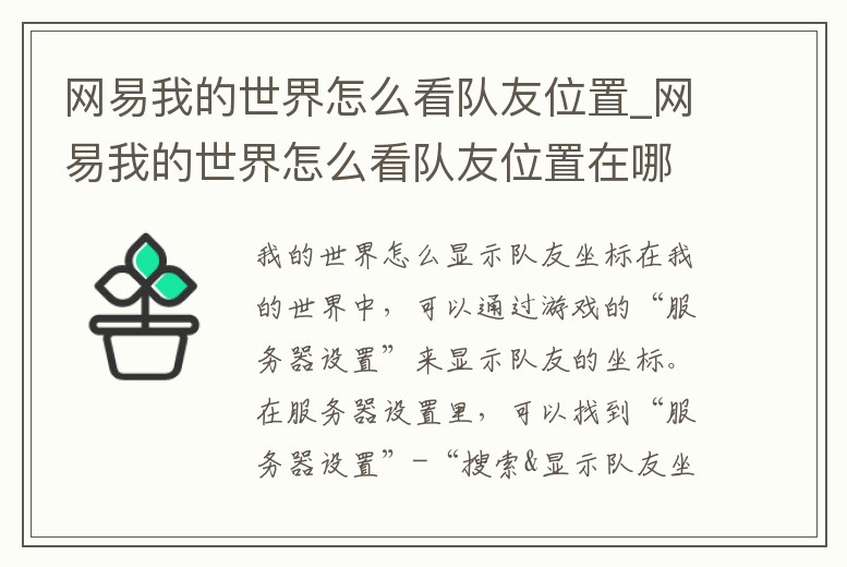 - 網易我的世界怎么看隊友位置_網易我的世界怎么看隊友位置在哪