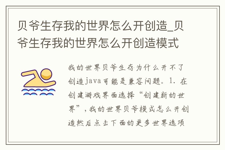- 貝爺生存我的世界怎么開(kāi)創(chuàng)造_貝爺生存我的世界怎么開(kāi)創(chuàng)造模式
