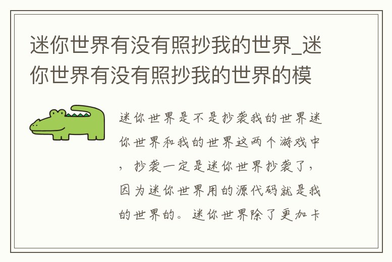 迷你世界有沒有照抄我的世界_迷你世界有沒有照抄我的世界的模組