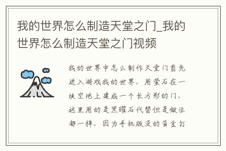 - 我的世界怎么制造天堂之門_我的世界怎么制造天堂之門視頻