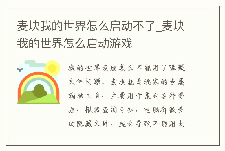 - 麥塊我的世界怎么啟動不了_麥塊我的世界怎么啟動游戲