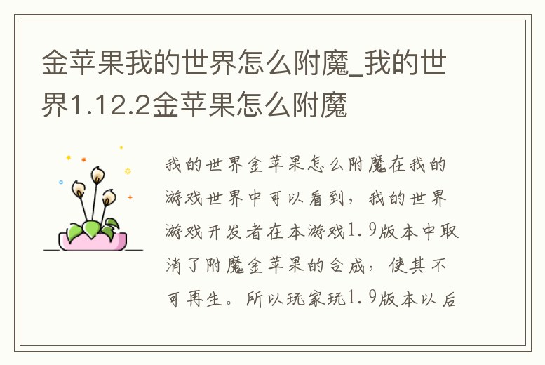 金蘋果我的世界怎么附魔_我的世界1.12.2金蘋果怎么附魔