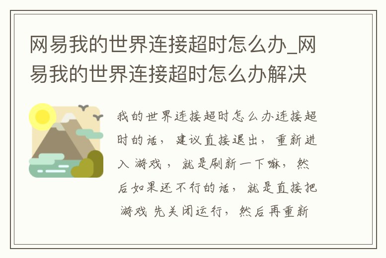- 網(wǎng)易我的世界連接超時怎么辦_網(wǎng)易我的世界連接超時怎么辦解決