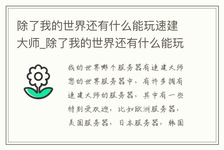 除了我的世界還有什么能玩速建大師_除了我的世界還有什么能玩速建大師的游戲