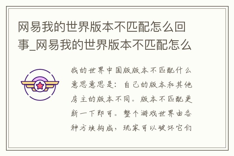 網易我的世界版本不匹配怎么回事_網易我的世界版本不匹配怎么回事兒