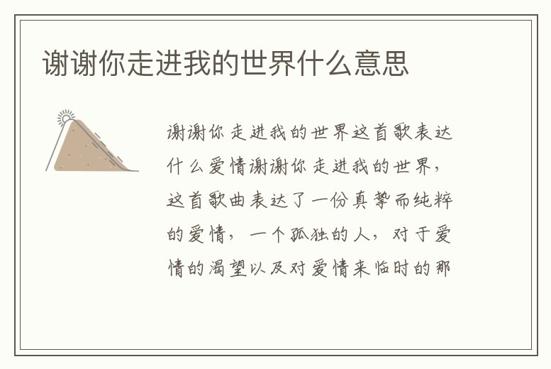 1、謝謝你走進我的世界的歌詞有什么深遠的意義