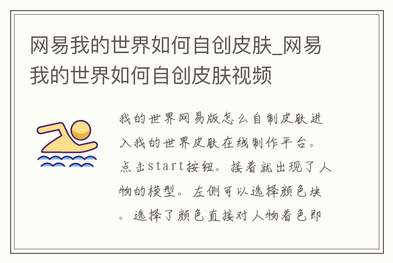 網易我的世界如何自創皮膚_網易我的世界如何自創皮膚視頻