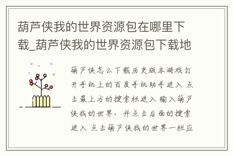 葫蘆俠我的世界資源包在哪里下載_葫蘆俠我的世界資源包下載地址