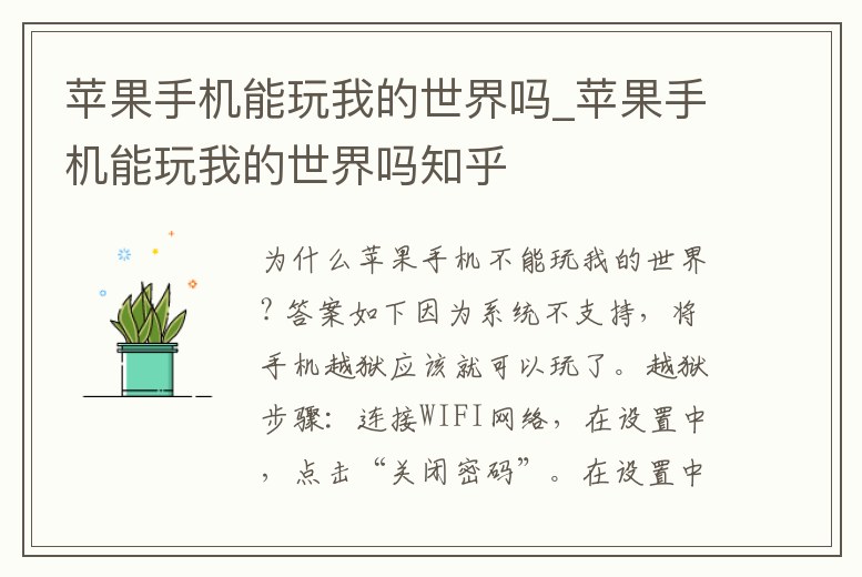 蘋果手機能玩我的世界嗎_蘋果手機能玩我的世界嗎知乎