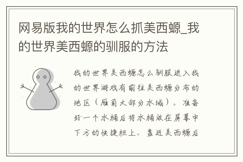 網易版我的世界怎么抓美西螈_我的世界美西螈的馴服的方法