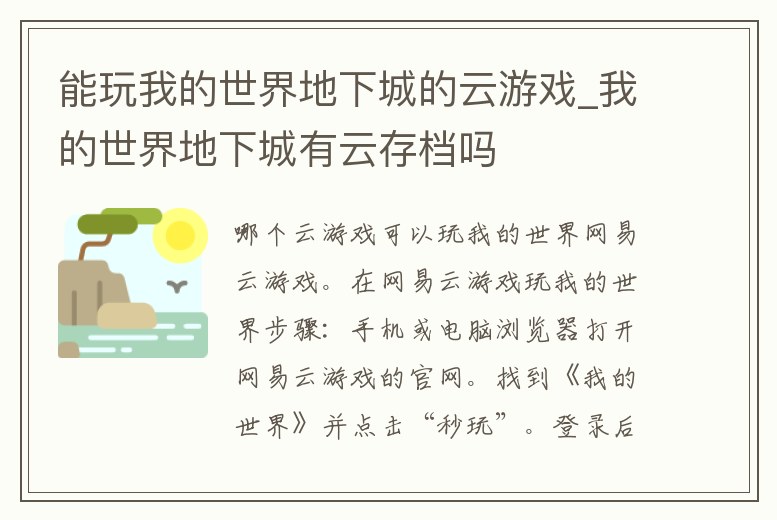 能玩我的世界地下城的云游戲_我的世界地下城有云存檔嗎