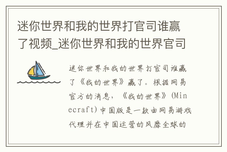 迷你世界和我的世界打官司誰贏了視頻_迷你世界和我的世界官司打贏了嗎