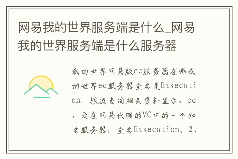 網易我的世界服務端是什么_網易我的世界服務端是什么服務器