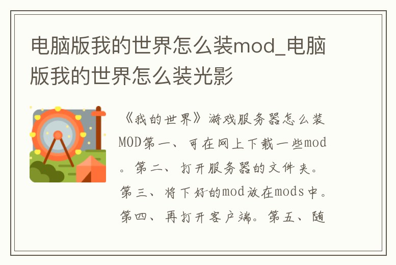 電腦版我的世界怎么裝mod_電腦版我的世界怎么裝光影