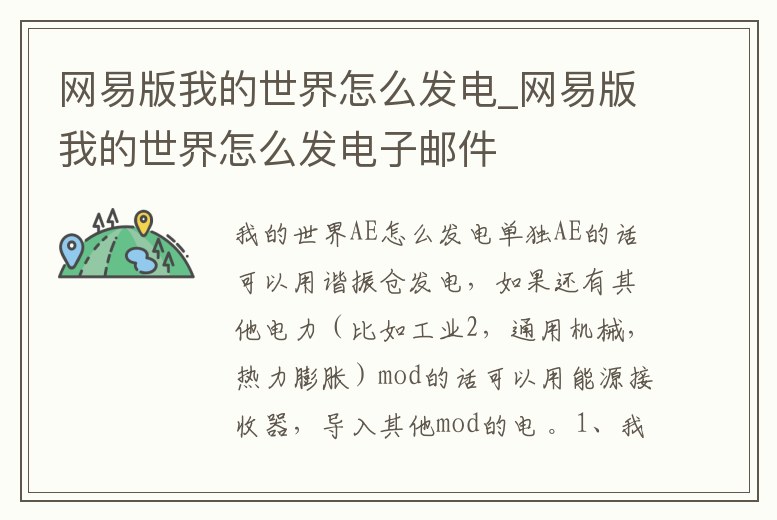網(wǎng)易版我的世界怎么發(fā)電_網(wǎng)易版我的世界怎么發(fā)電子郵件