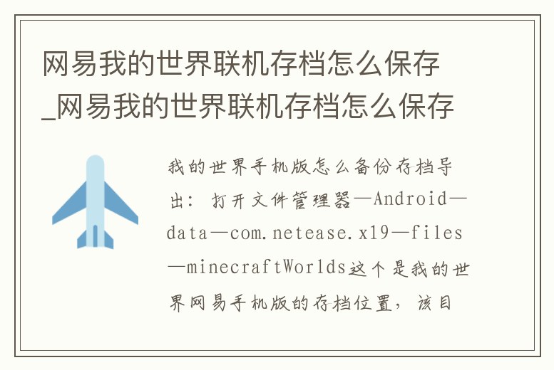 網易我的世界聯機存檔怎么保存_網易我的世界聯機存檔怎么保存進度