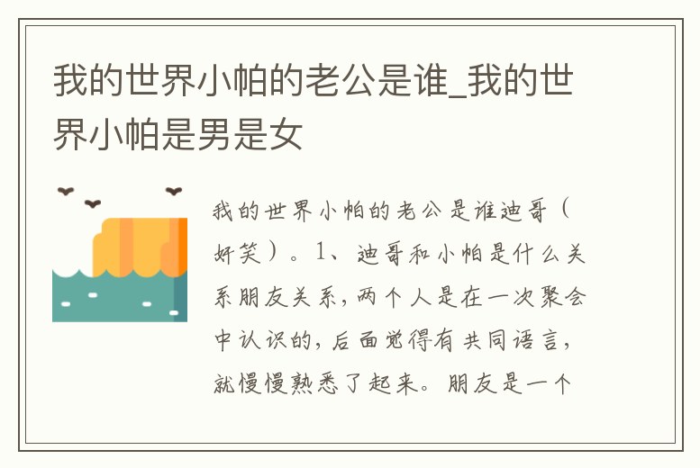 - 我的世界小帕的老公是誰_我的世界小帕是男是女
