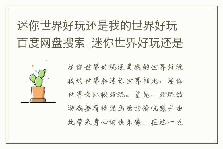 迷你世界好玩還是我的世界好玩百度網盤搜索_迷你世界好玩還是我的世界好玩百度網盤搜索下載
