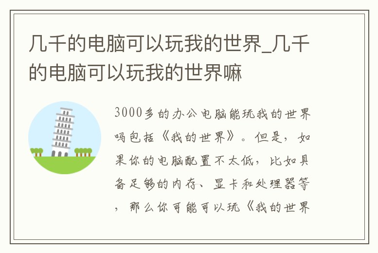 幾千的電腦可以玩我的世界_幾千的電腦可以玩我的世界嘛