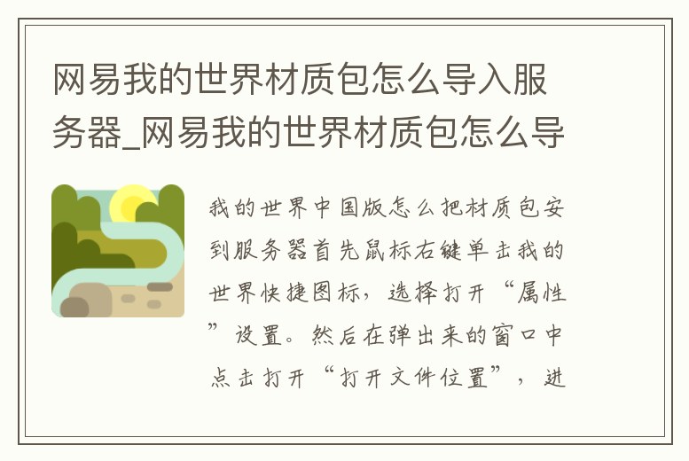 - 網(wǎng)易我的世界材質(zhì)包怎么導(dǎo)入服務(wù)器_網(wǎng)易我的世界材質(zhì)包怎么導(dǎo)入服務(wù)器中