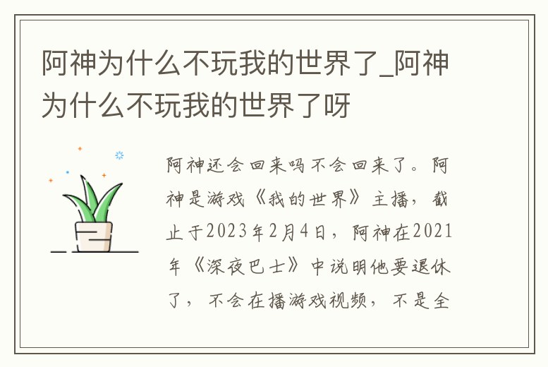 阿神為什么不玩我的世界了_阿神為什么不玩我的世界了呀