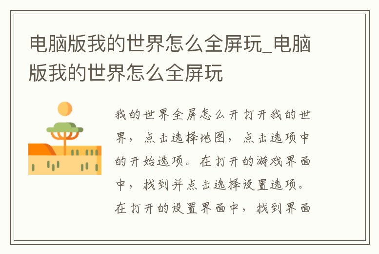 電腦版我的世界怎么全屏玩_電腦版我的世界怎么全屏玩