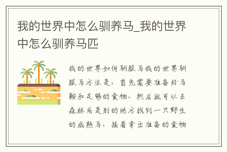 我的世界中怎么馴養馬_我的世界中怎么馴養馬匹