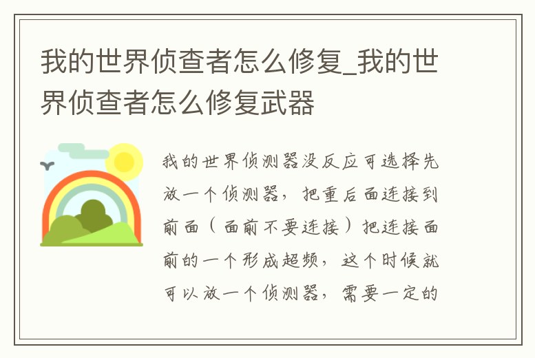 我的世界偵查者怎么修復(fù)_我的世界偵查者怎么修復(fù)武器