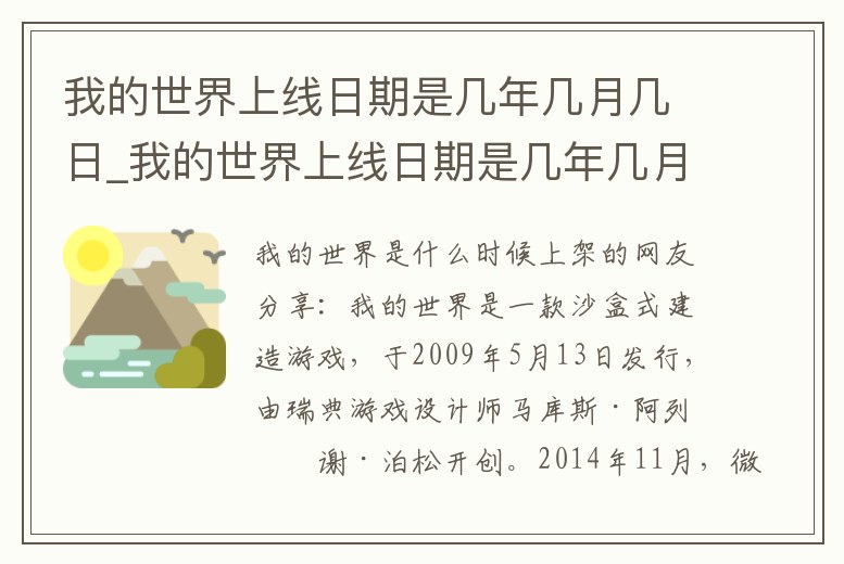 我的世界上線日期是幾年幾月幾日_我的世界上線日期是幾年幾月幾日開(kāi)始